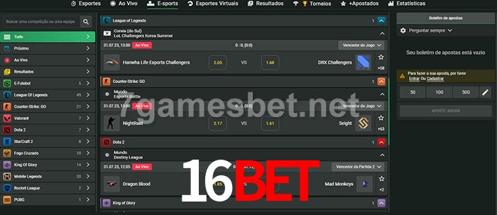 O 16bet oferece uma grande seleção de opções de apostas em e-sports com probabilidades competitivas